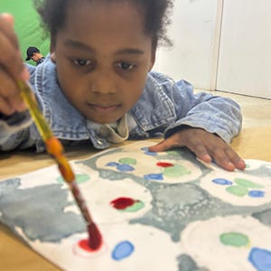 Young artists learned the vocabulary by experiencing what the words mean. Catalyzeโto cause or accelerate changeโbecame concrete through painting, moving, singing. They could define it and demonstrate it. Transformation and changeโwords describing what they caused and what they felt through their choices. Full circleโthe cycles they experienced coming back to the work with fresh understanding. Open heart and open mindโthe mindset required to approach materials with curiosity and possibility. Strengthโwhat they built through showing up and trying again.