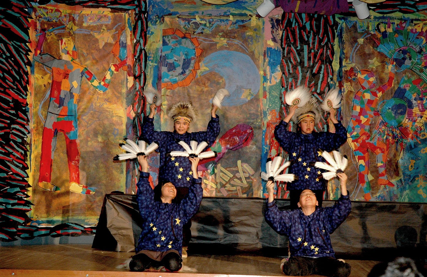 After the performance, the canvas made the return journey home to hang permanently in the village school, where community life unfolds daily. This circular journey of art echoes the deeper cycles of cultural knowledge being passed between generations in southwest Alaska.