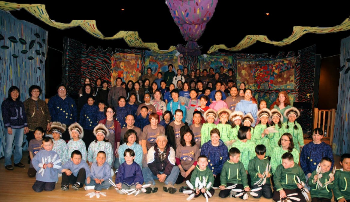 Large painted canvases, carefully wrapped and secured, boarded a small bush plane in the village of Kasigluk, Alaska. Its destination: Bethel, the hub city on the Kuskokwim River that connects 56 Yup'ik villages spread across the tundra. The painting—created by young hands guided by elder stories—was to serve as the backdrop for a performance that bridged generations.